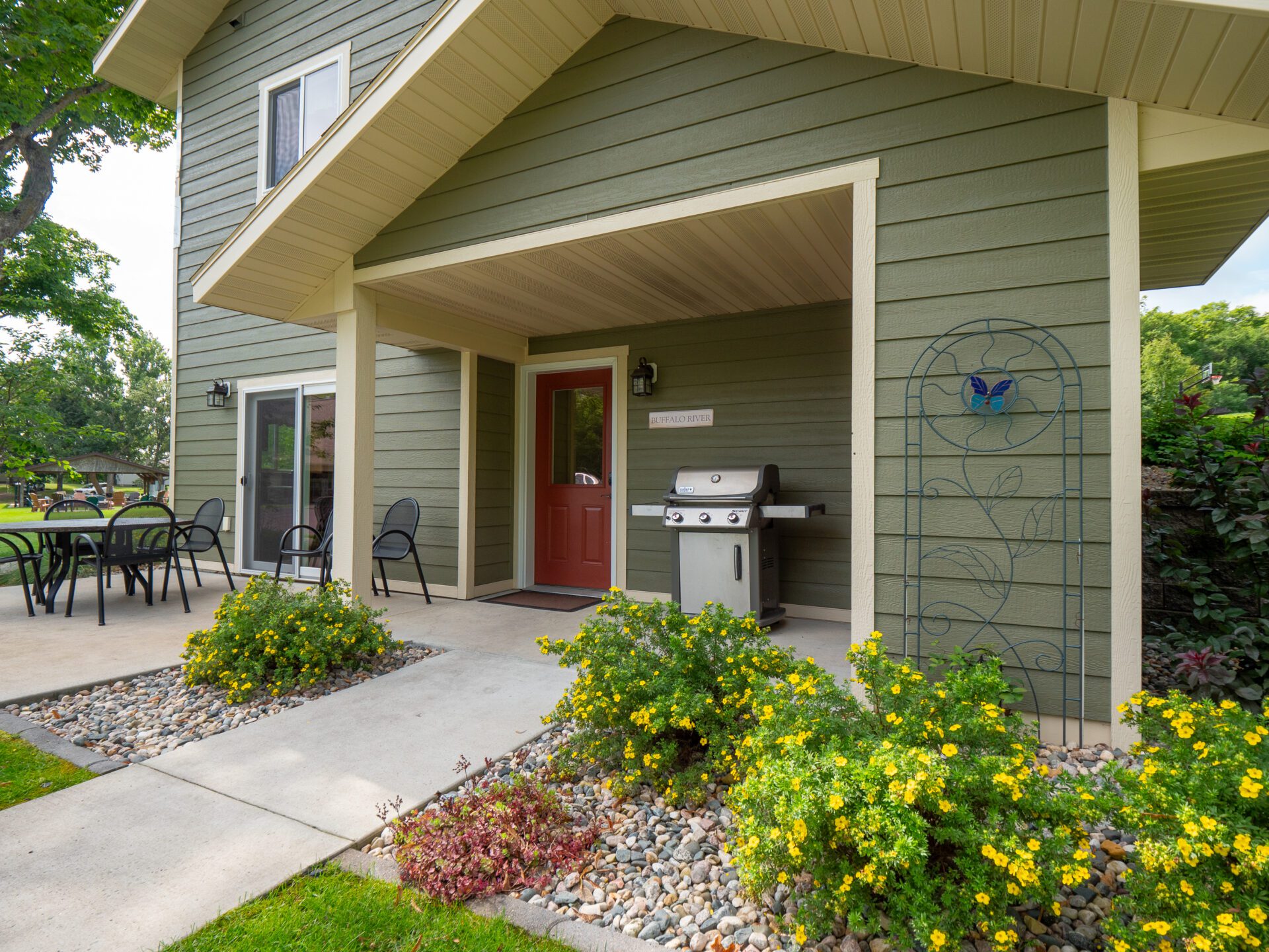 This spacious vacation home is conveniently located near our lodge, volleyball court, pavilion and playground. Enjoy convenient access to the shore of clear, sparkling East Silent Lake in central Otter Tail County. The lake home has been built with features that today’s families desire – two spacious bedrooms, two three-quarter bathrooms, two designer kitchens, stainless steel appliances and custom cabinets. And of course…a great room with comfortable furniture, a large dining table, entertainment center, and gas fireplace. The large deck extends your great room into a delightful park setting, perfect for dining, reading, sunbathing and more. Kids will love the close proximity to the sports courts. Need a break from the rest of the family? The second gathering space offers comfortable furniture and flat screen with internet television, a large high top dining table and second patio with barbeque grill.